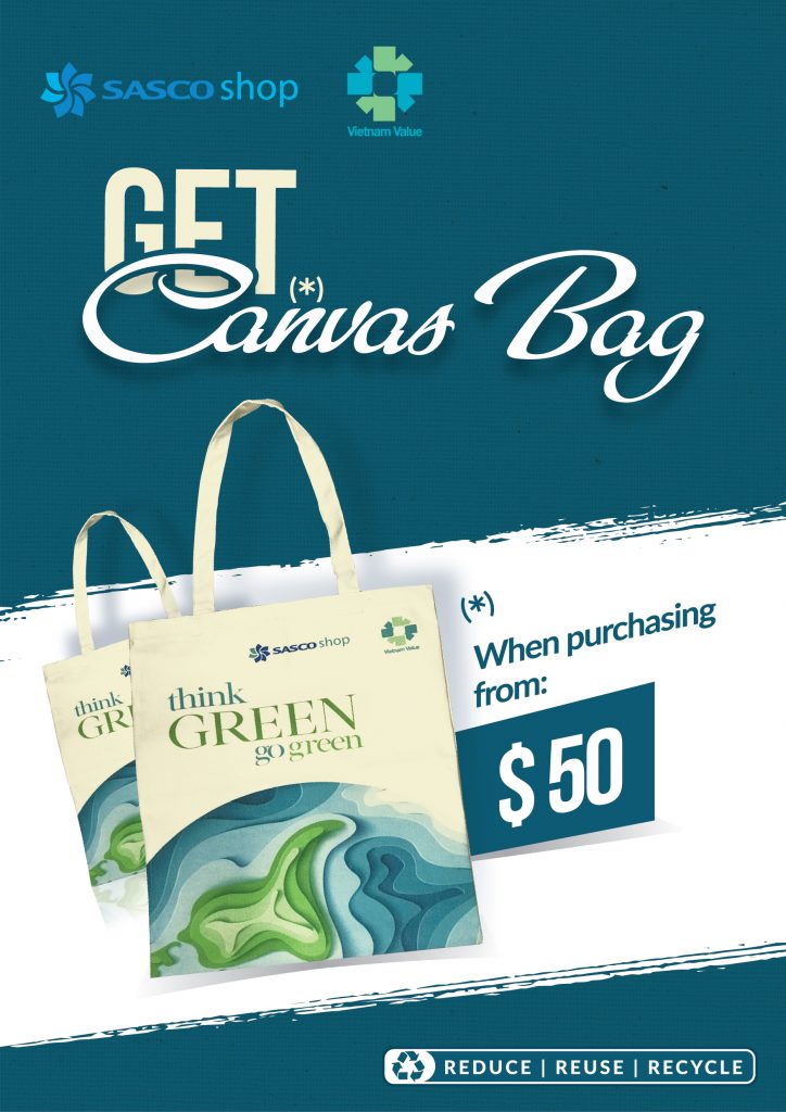 Earth is heating up every day and nylon bags are one of the "culprits" that caused that phenomenon. The process of making nylon bags produces CO2 - which causes the greenhouse effect and it takes hundreds of years to disappear. Therefore, we need to limit the use of nylon bags from now on. To join hands with the community, SASCO Shop launches 'Think Green, Go Green' promotion with the goal of changing using nylon bags habit of customers. Specifically, with the purchase invoice at SASCO Shop from VND 500,000 (Domestic Terminal) or USD 50 (International Terminal), customers will be given a high-quality canvas bag. The program takes place from June 3rd to July 31st, 2019.