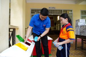 Hướng dẫn các em học sinh phân loại rác thải[/caption]