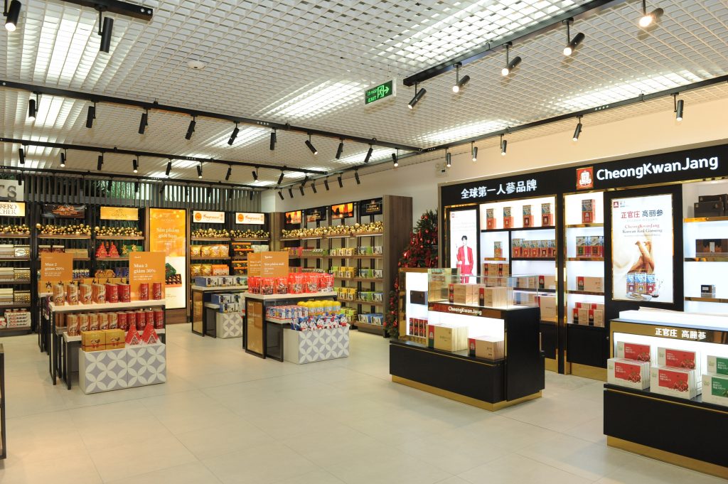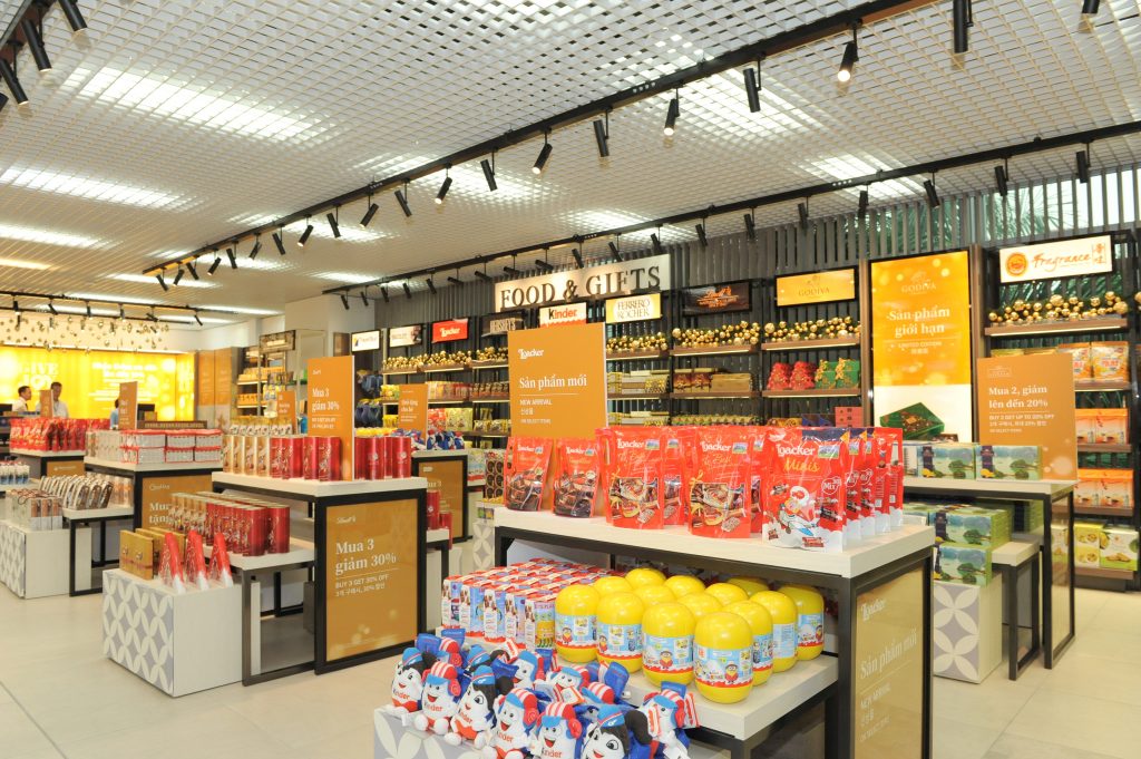 Cửa hàng được thiết kế các khu vực riêng biệt, sang trọng theo tiêu chuẩn riêng của từng nhãn hàng đáp ứng nhu cầu mua sắm đa dạng của hành khách nhưng vẫn tạo được không gian riêng tư, đẳng cấp của mỗi thương hiệu. Chỉ trong một cửa hàng, hành khách có thể khám phá 200 loại Whisky từ các hãng danh tiếng trên thế giới, tha hồ chọn lựa trong thế giới riêng của bánh kẹo, chocolate cao cấp, hoặc chọn mua sản phẩm độc quyền chỉ có tại cửa hàng miễn thuế hay hàng lưu niệm phiên bản giới hạn...
