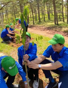 Trong ngày đầu ra quân, 300 cây giống Mai anh đào, Phượng tím, Mimosa đã được vun trồng, chăm chút tỷ mỉ cùng những hy vọng xanh. Bạn Nguyễn Trâm Anh, Bí thư Đoàn Thanh niên chia sẻ “Chúng tôi thực sự hạnh phúc được thực hiện các dự án bền vững của Công ty, góp sức trẻ trồng cây gây rừng và lan tỏa những thông điệp ý nghĩa bảo vệ hành tinh của chúng ta. Những cây giống hôm nay sẽ tăng trưởng thật nhanh, kết nên những sắc màu thật đẹp, thật đặc trưng của Đà Lạt, mang đến du khách trong nước và quốc tế những trải nghiệm đặc biệt, khó quên của xứ sở ngàn hoa”.
