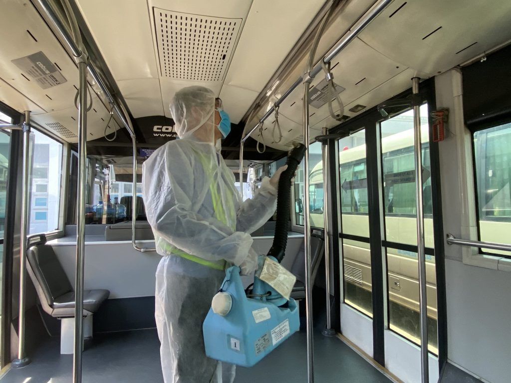 Việc khử trùng được tiến hành với toàn bộ khu hành khách và buồng lái tài xế, đặc biệt chú trọng các vị trí dễ bị nhiễm virus: mặt sau của ghế đằng trước, vị trí nắm tay, cửa xe. Sau khi phun thuốc xịt khử trùng, xe sẽ được đóng cửa 10 phút để thuốc phát huy tác dụng. Sau 30 phút, xe có thể tiếp tục phục vụ hành khách.