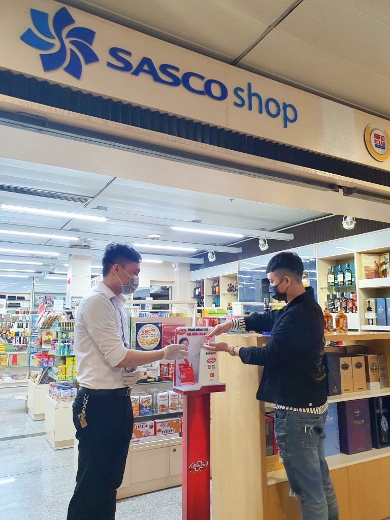 Cụ thể: 50 máy đựng nước rửa tay sạch khuẩn Lifebuoy được khẩn trương triển khai lắp đặt tại tất cả hệ thống kinh doanh của SASCO tại sân bay Tân Sơn Nhất: phòng chờ thương gia; nhà hàng; hệ thống bán lẻ SASCO Shop; Fresh2Go; đội xe sân đậu… 30 trụ đựng gel rửa tay khô được trang bị tại các quầy check-in, cổng ra vào, khu vực sau kiểm tra an ninh.