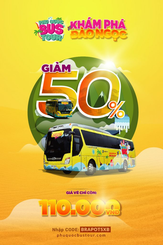 Mùa hè này (từ 1/6 đến 31/7), Phú Quốc Bus tour có chương trình ưu đãi giảm 50% giá vé. Chỉ với 110.000 đồng (vé 24 giờ), bạn có thể tự do trải nghiệm 15 điểm đến nổi bật, từ điểm du lịch tâm linh: chùa Hộ Quốc đến các bãi biển, thắng cảnh xinh đẹp: bãi Sao, Suối Tranh hay các làng nghể nổi tiếng: làng chài Hàm Ninh, trại sim, vườn tiêu…