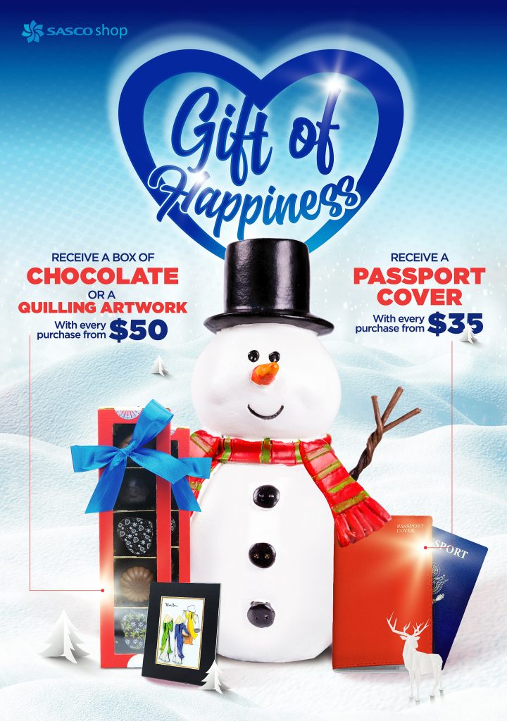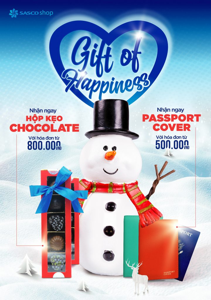 Mùa Giáng sinh đang tới gần và tặng quà là một trong những phong tục tuyệt vời nhất ngày Giáng sinh. Thông qua những món quà xinh xắn, chúng ta có thể thể hiện tình cảm của mình đến gia đình, người thân và bè bạn. Với mong muốn trao gửi niềm hạnh phúc đến những hành khách tại sân bay Tân Sơn Nhất, SASCO mang đến chương trình khuyến mãi "Gift of Happiness" có thể lệ như sau:
